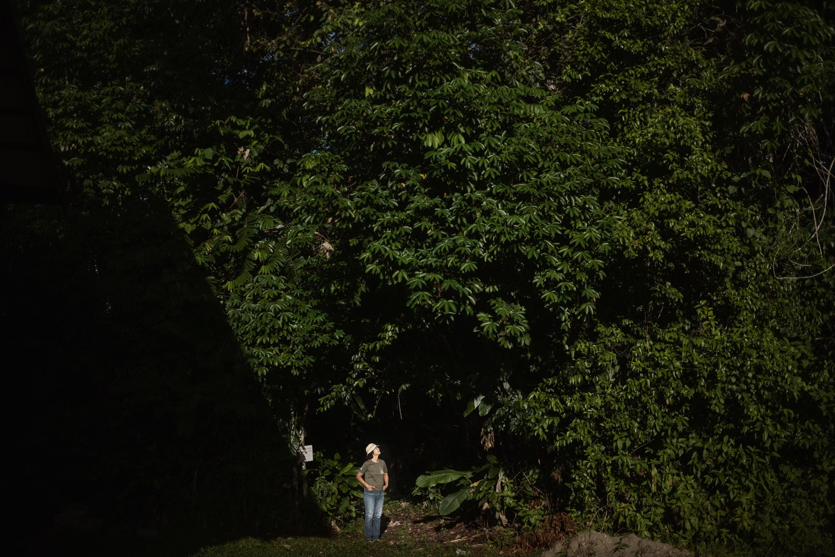 The portrait usually comes later, once you understand the person better. Make it an environmental portrait and avoid the cliché of someone holding a tool. Use light, gesture, texture, and space to say something about who they are. Monique did not like the limelight, so I made her small in the frame and used light to create the mood for a darker story about habitat loss. This is the one image where you get to control everything, so take your time.